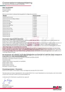 Therefore, we have developed a special DUKA One model intended for the home’s wet rooms. When the bathroom (or other wet rooms) is not in use, the DUKA One unit provides basic ventilation with heat recovery. The unit has a built-in humidity sensor, and when it is activated, the unit switches to boost mode with pure exhaust operation at level III. This is important, as moisture from the bathroom must not be transferred to adjacent rooms. When the humidity level drops below the set threshold, the unit switches back to basic ventilation with heat recovery.