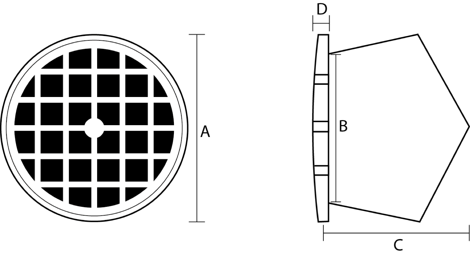 Type | Dimension | Air flow-through | A | B | C | D |