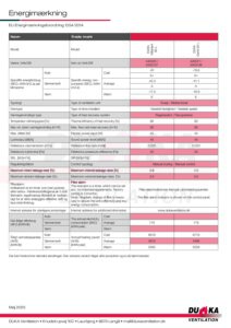 Capacity and heat recovery rate (VGV) according to BR 18 requirements and 70 Pa in system back pressure.