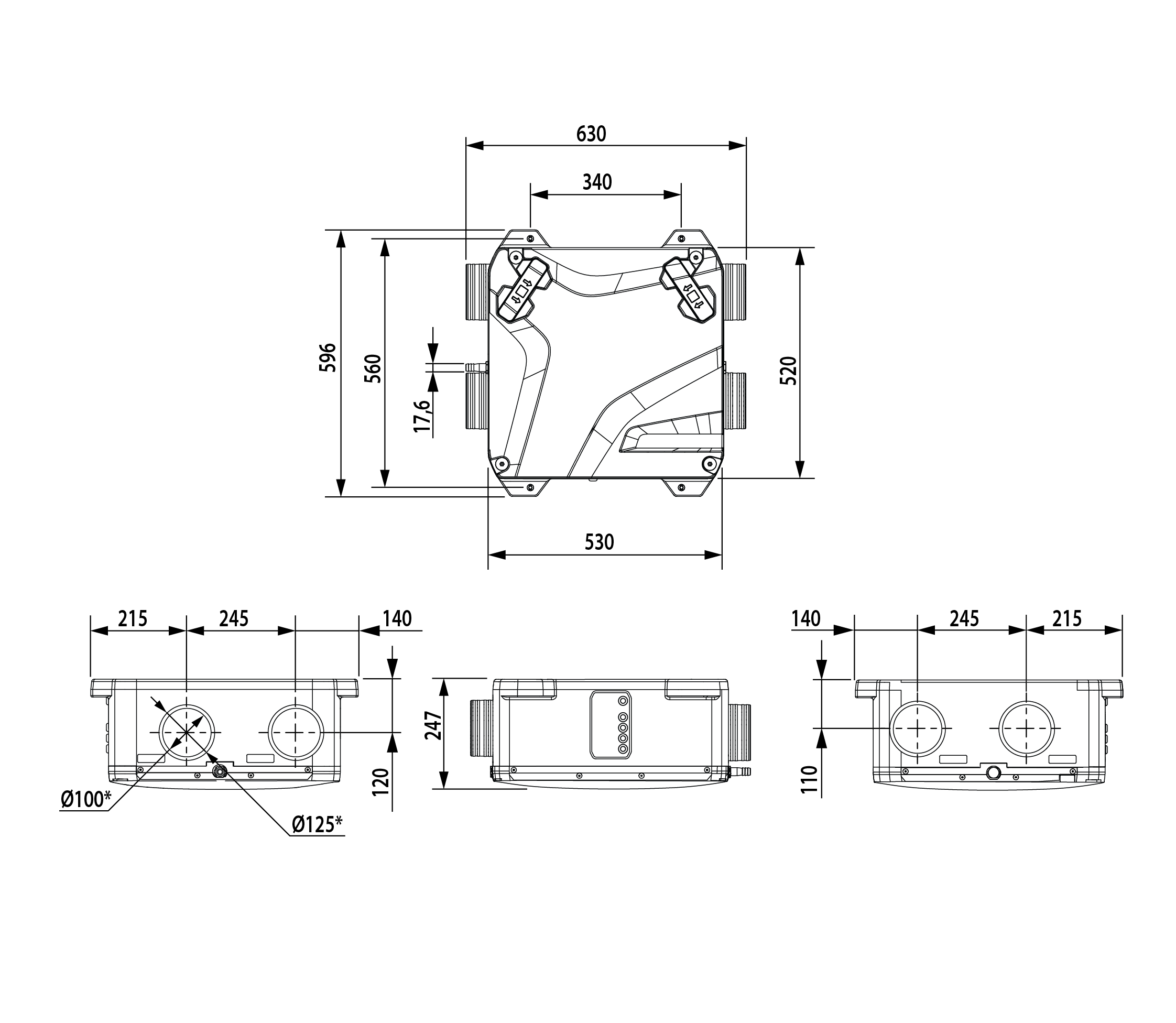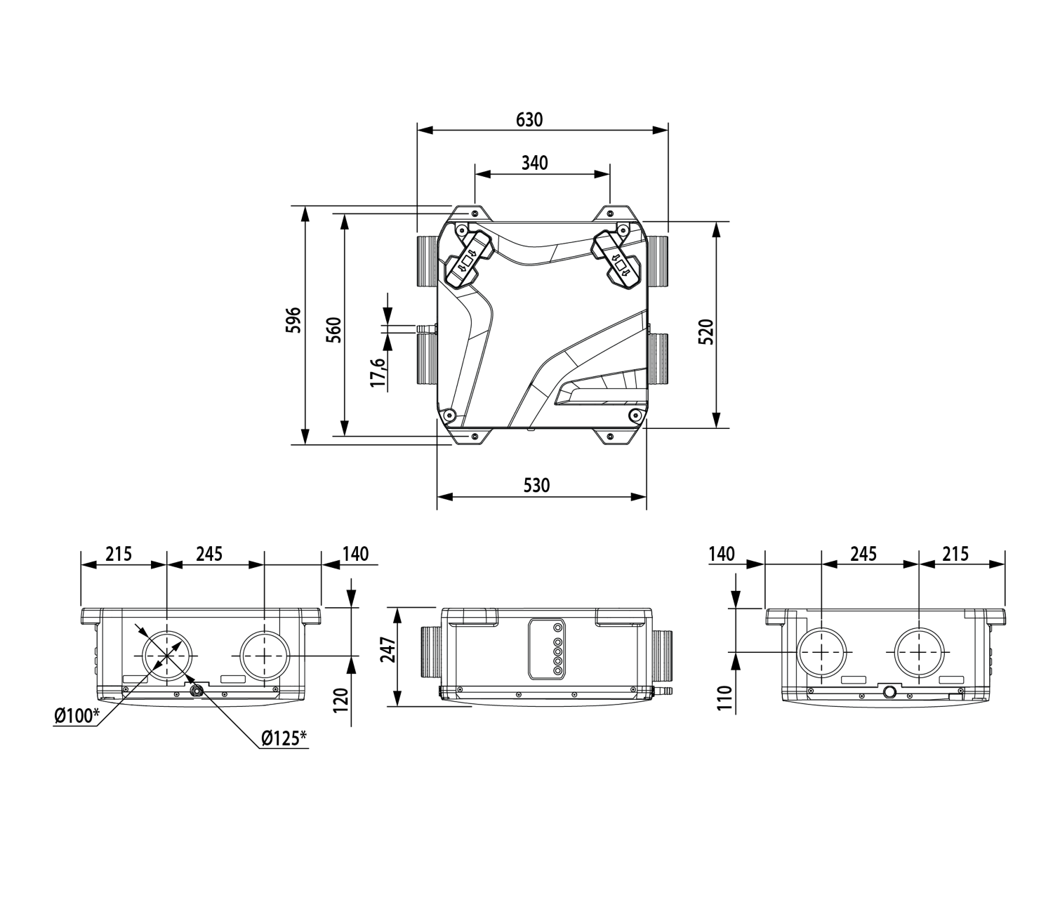 VillaVent 90 L | Ø100 / Ø125 mm | 28 l/s | 82-94 % | 90 square metres | 130 l/s |