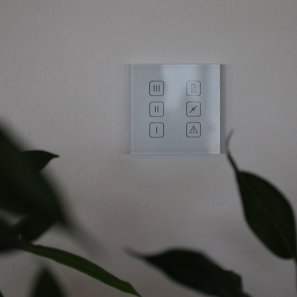 DUKA VillaVent comes with a control panel for easy operation of the unit. On the control panel you can choose between three ventilation speeds, see filter alarm, other alarms and activation of bypass.