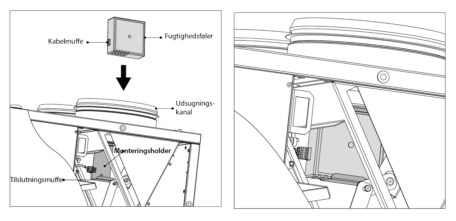 The humidity sensor is mounted in the exhaust outlet from the housing as seen in the graphic below.